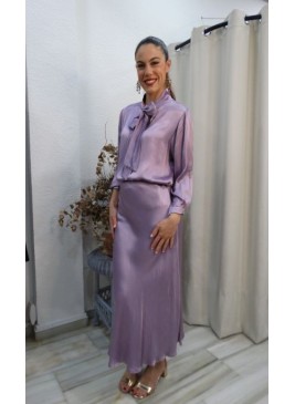 Falda en poliéster, con pliegues delanteros y cinturilla plisada en la parte posterior