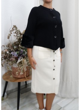 Rebeca de Punto Negra con Botones Frontales y Manga Estilo...