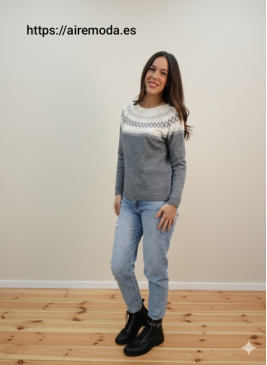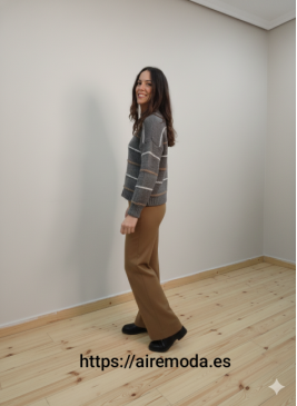 Jersey de Punto Gris con Rayas Horizontales | Colección Mujer