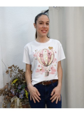 Añadir lista de deseos Camiseta Con Globo Aerostático Rosa | Mariposas y Corazones... 12,00 € Añadir al carrito
