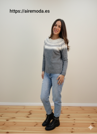 ¡En oferta! Añadir lista de deseos Jersey de Punto Gris y Cenefa Nórdica en Blanco y Gris 17,50 € Añadir al carrito